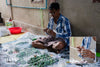 A man paints on dyes onto a Jade Bangle to mimic natural looking colour veins and inclusions.