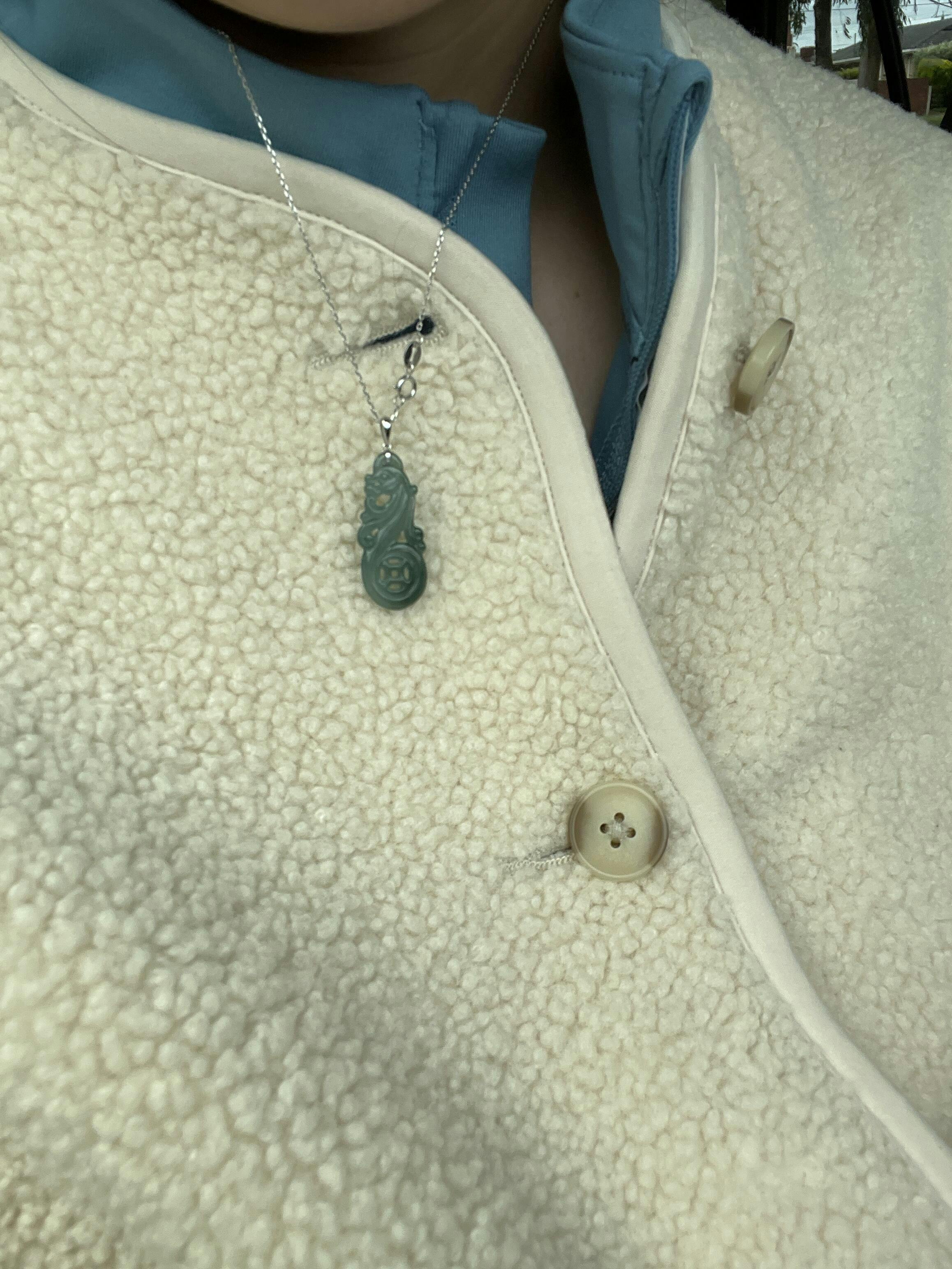 The bluish-green color of the jade pendant offers a sophisticated and vibrant touch to any ensemble. Carved into the shape of a phoenix, the pendant symbolizes renewal and strength, making it not just a piece of jewelry, but a meaningful keepsake.