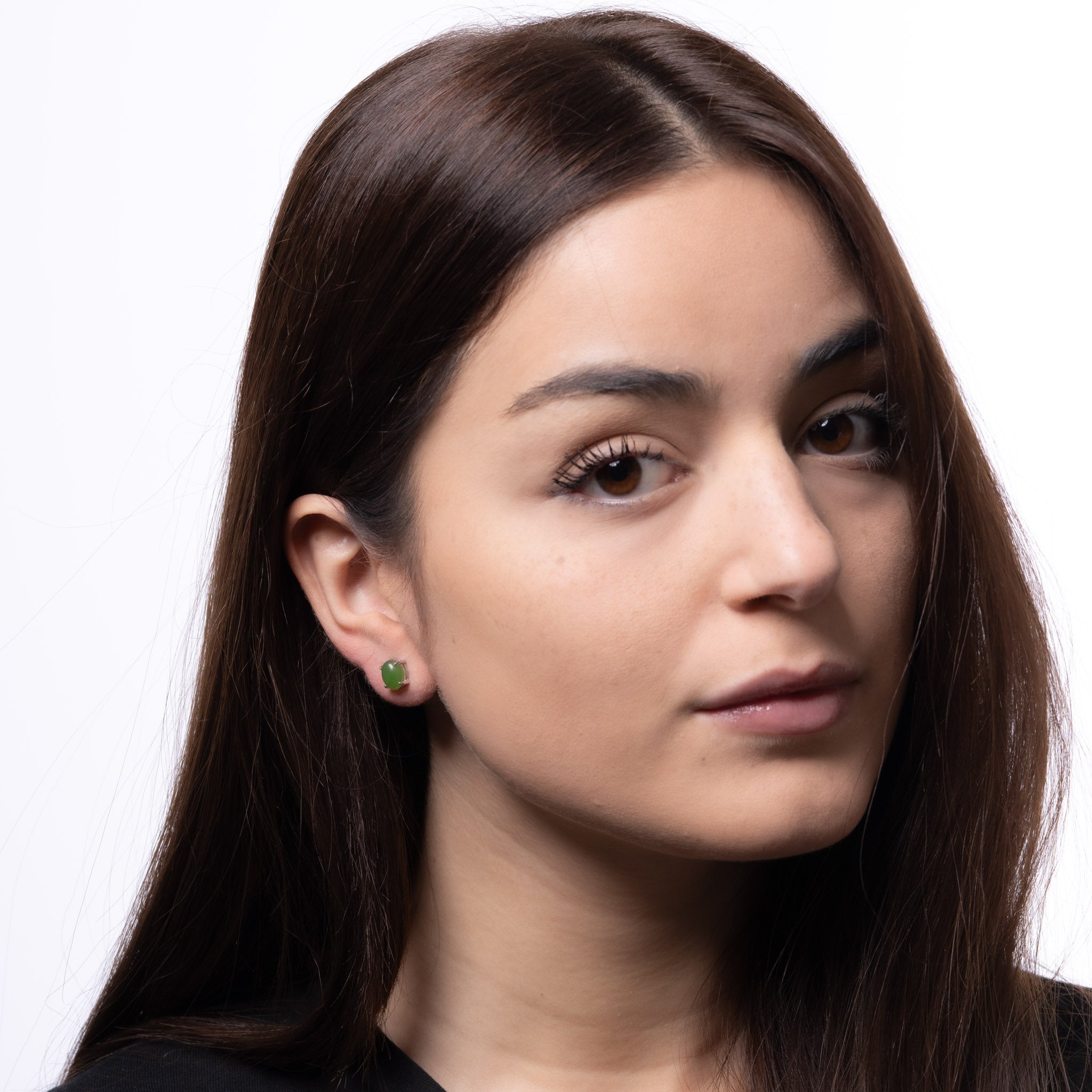 A modern take on a classic favourite, the Jade Crest Stud Earrings feature oval-cut green nephrite jade cabochons secured in an elegant four-prong setting. Made with solid 925 sterling silver, these earrings offer a structured, refined silhouette while letting the natural beauty of jade take centre stage.