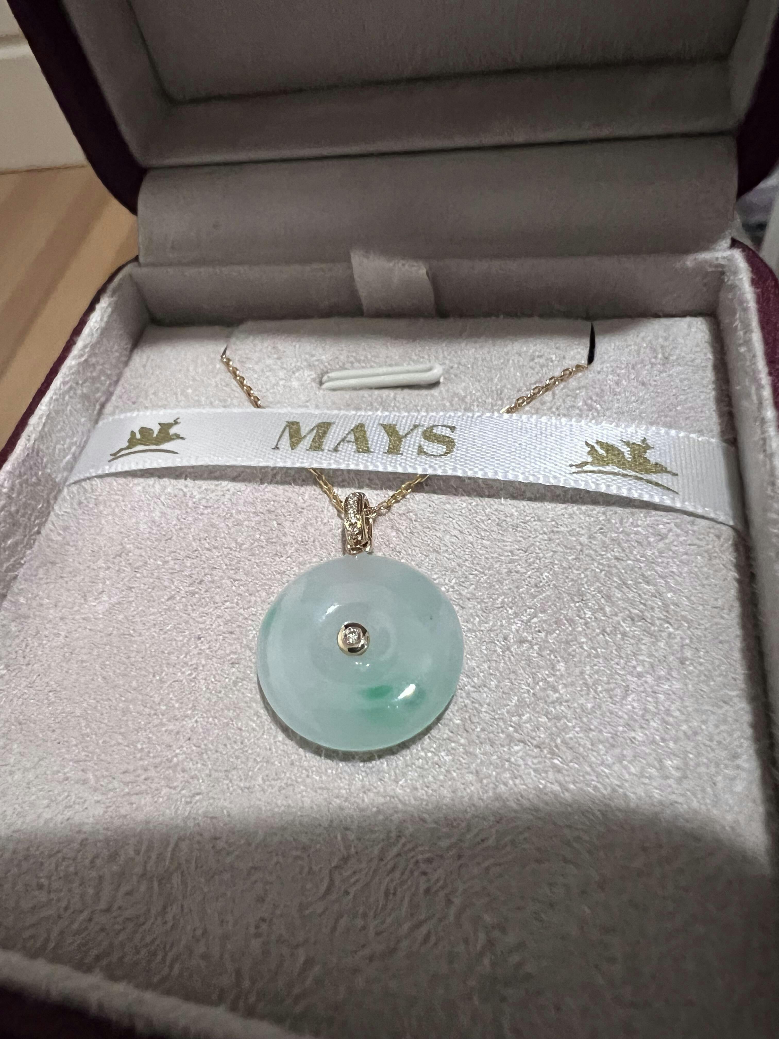 Elevate your jewelry collection with this exquisite Jade Disc Pendant featuring a stunning diamond weight of 2.5 grams. Crafted from 18K yellow gold, this pendant showcases a mesmerizing pale green hue with an apple green pattern, adding a touch of elegance to any outfit.