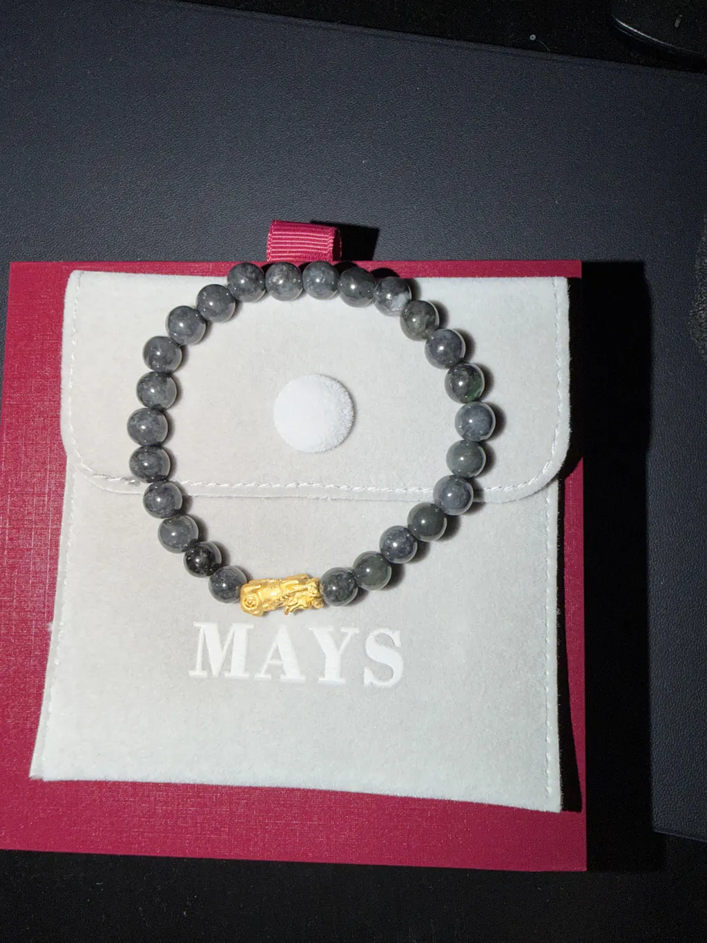 Embrace prosperity and protection with the Wealth Guardian Jade Bracelet, crafted with dark grey and black Burmese jade beads and adorned with a striking 24K hollow gold Pixiu charm. The Pixiu, a mythical creature in Chinese culture, is believed to attract wealth, ward off negativity, and safeguard its wearer, making this bracelet a powerful symbol of abundance and resilience.