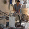 The rough bangles are ready to be hand carved into the desired styles: round, semi-round, half-moon or flat. The technique uses two halves of a tough-gritted diamond flat lap to shape the rough bangle into style while its mounted on a spinning spindle.