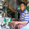 Once the Jadeite is in manageable slabs, workers draw outlines of bangles onto them. It's an important step, taking in to consideration these three factors: size, flaws and wastage. They would have to fit the maximum amounts of bangles on any given slab with the minimum amounts of flaws therefore, reducing wastage.